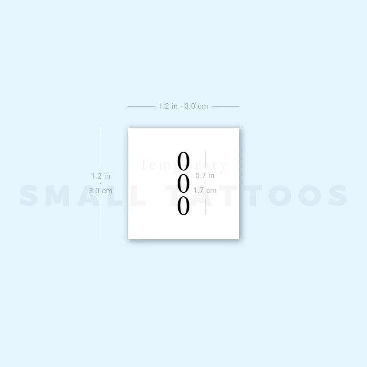 Small 000 Vertical Temporary Tattoo (Set Of 3)