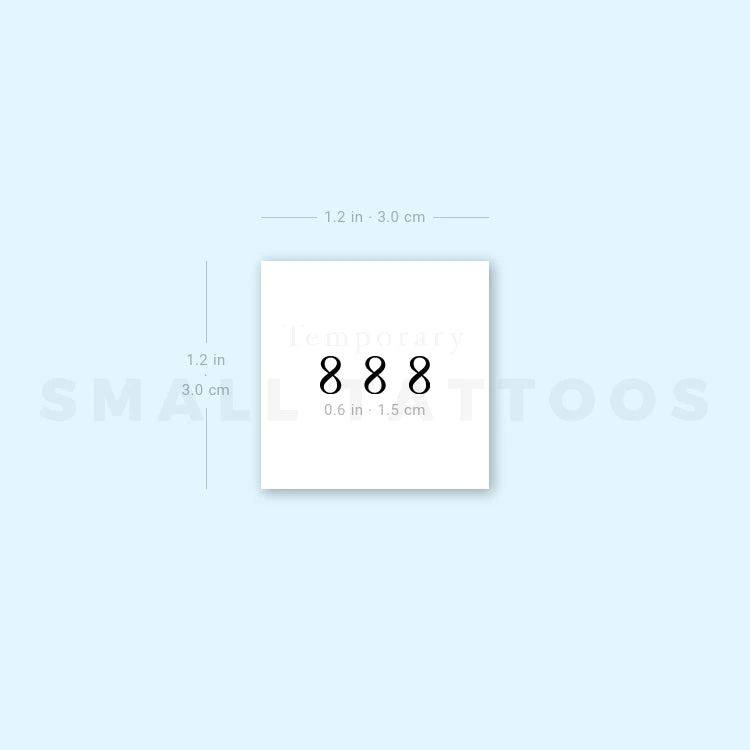 Small 888 Angel Number Temporary Tattoo (Set Of 3)
