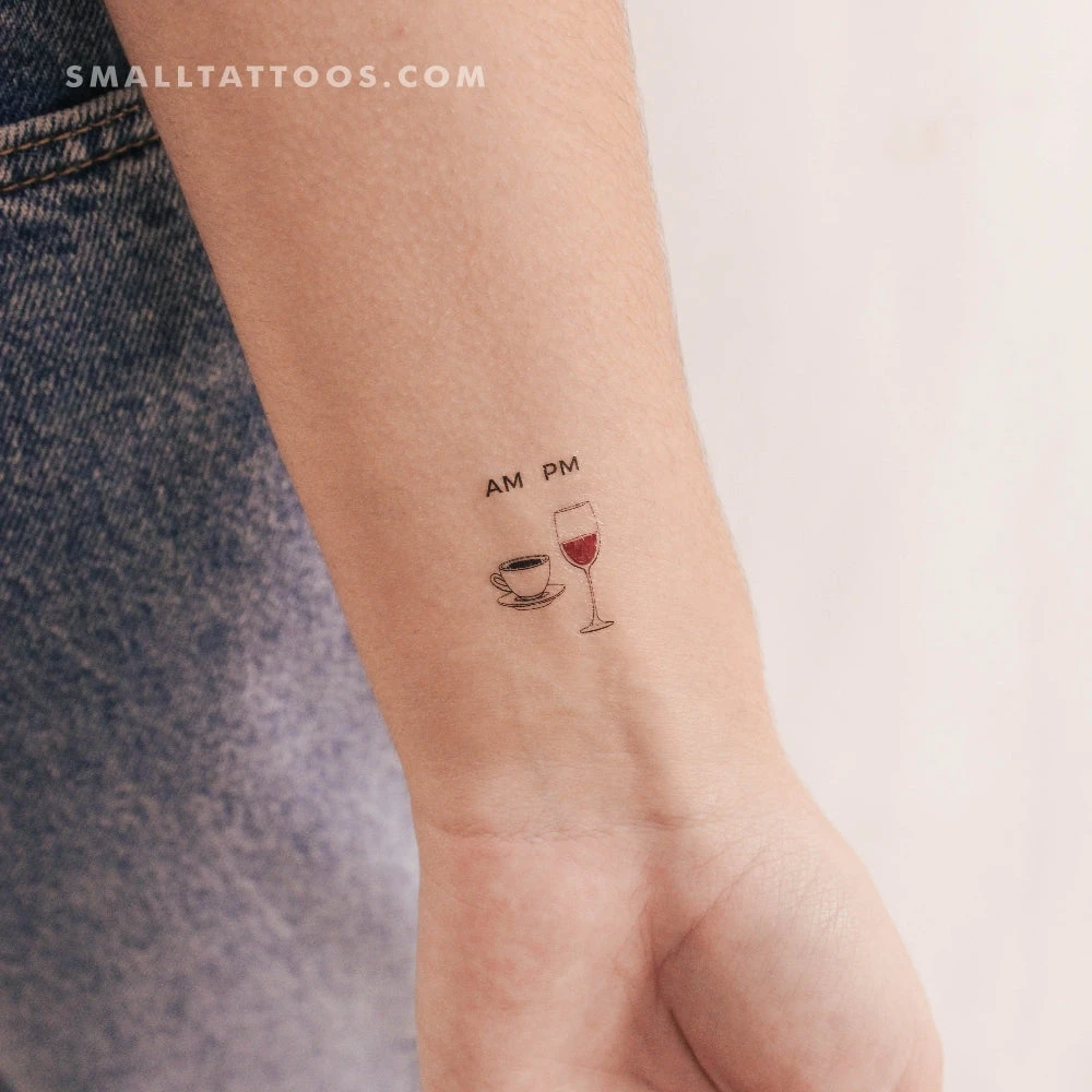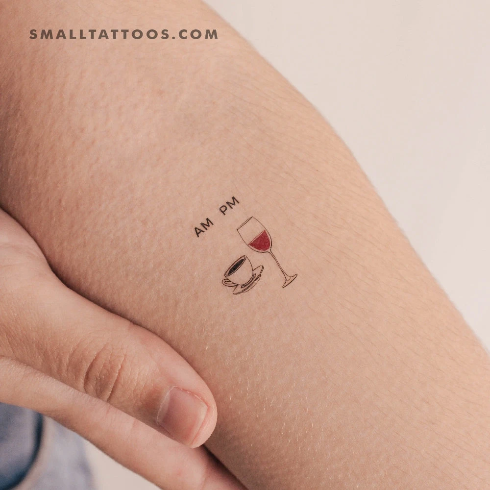 Small AM Coffee PM Wine Temporary Tattoo (Set Of 3)