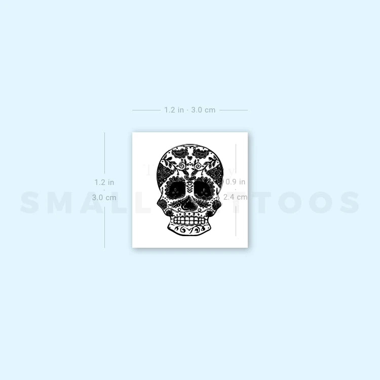 Small Black Sugar Skull Temporary Tattoo – Set Of 3