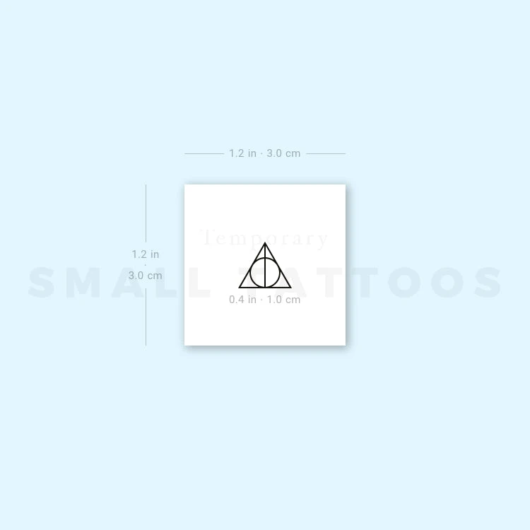 Are you looking for a cool tattoo to show your connection to the Harry Potter books? One of the most popular designs is the Deathly Hallows symbols, which makes for an eye-catching tattoo. Our small Deathly Hallows temporary tattoo, which showcases this iconic design, is the ideal way to try before you buy.Â