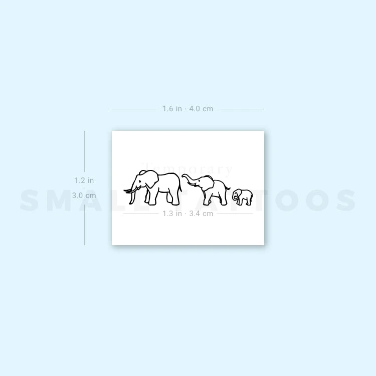 Small Elephant Family Temporary Tattoo (Set Of 3)