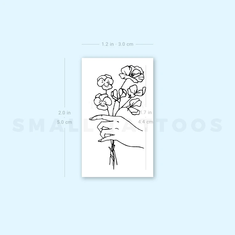 Small Hand Holding Flowers Temporary Tattoo (Set Of 3)