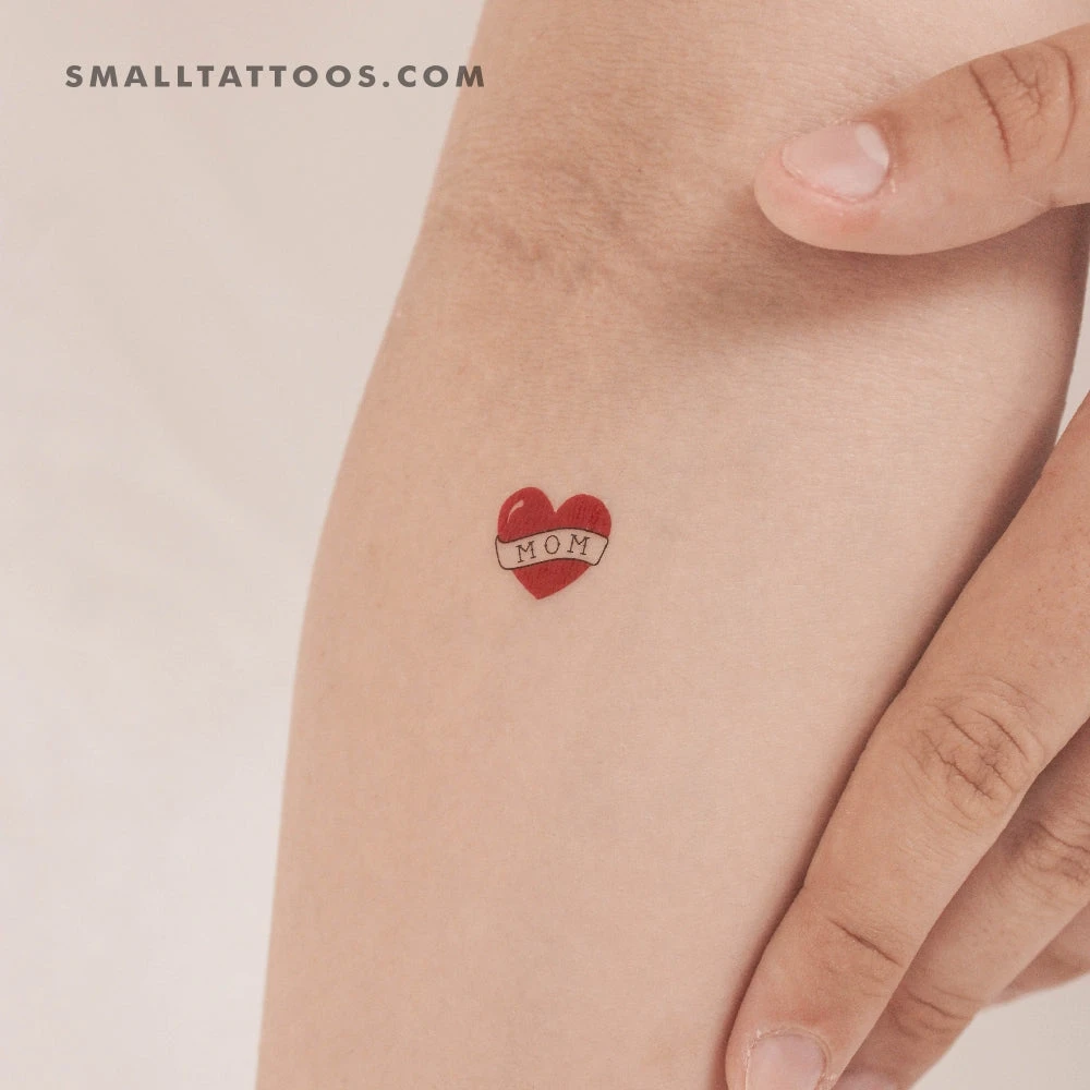 Small Heart With Mom Banner Temporary Tattoo (Set Of 3)