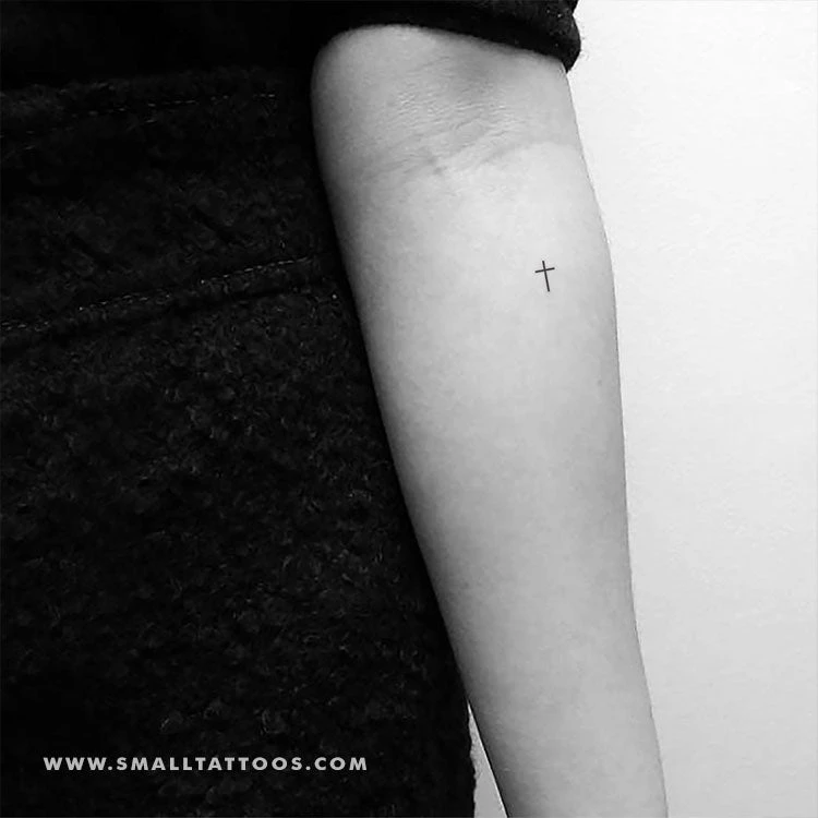 Minimalist Christian cross temporary tattoo.