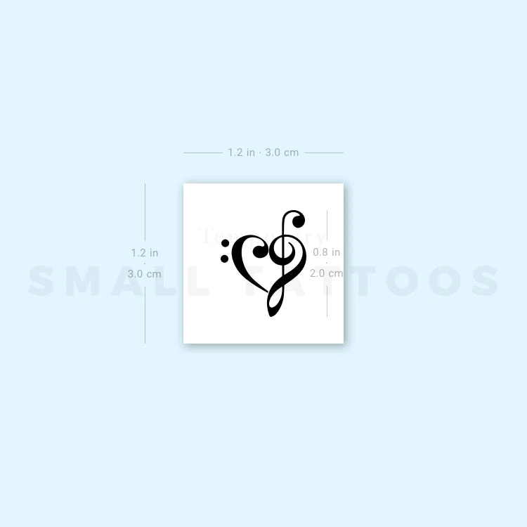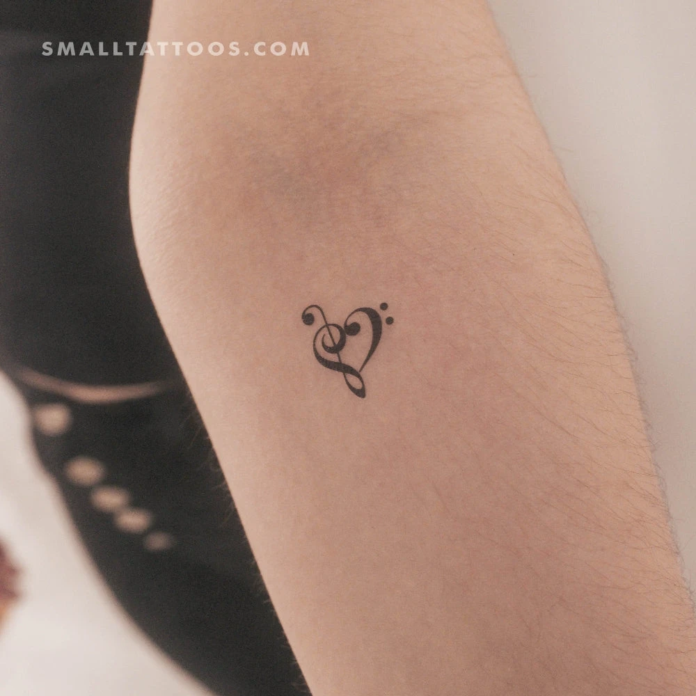 Small heart composed of the bass clef and the treble clef temporary tattoo.
