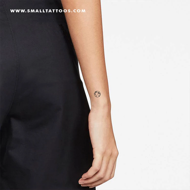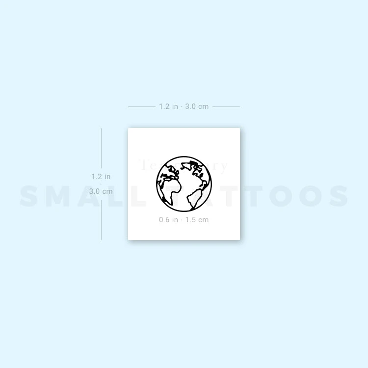 Small fine line planet Earth (Atlantic Ocean) temporary tattoo. Set of three.