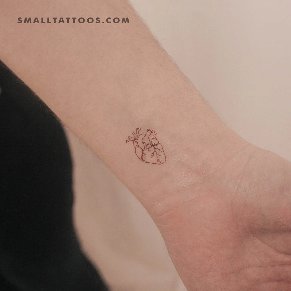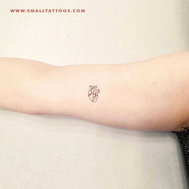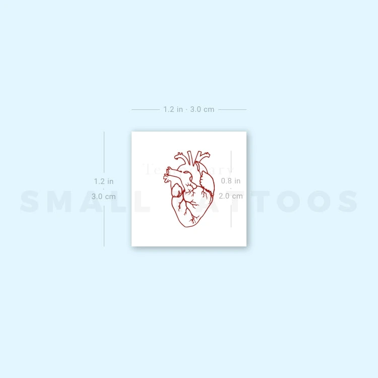 Our small red anatomical heart temporary tattoo is a great way to experiment with this design concept before getting inked. Created using red vegetable-based ink, this design features a realistic human heart with anatomically-correct features.Â