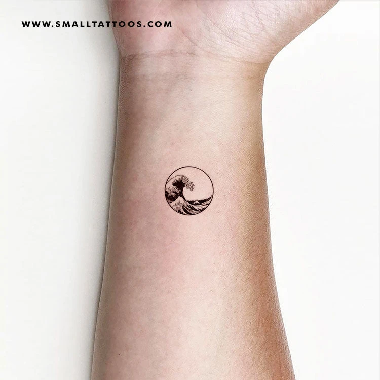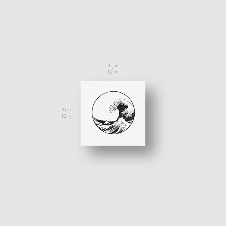 Small circle based off Japanese ukiyo-e artist Hokusai’s “The Great Wave off Kanagawa” temporary tattoo.