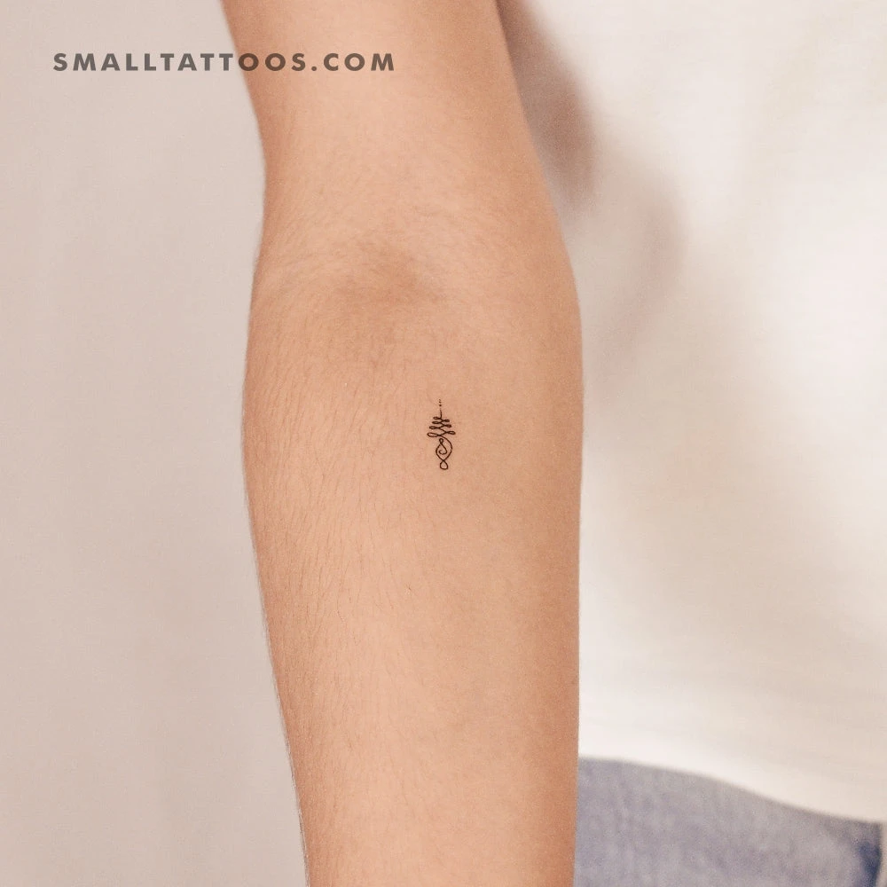 Small unalome temporary tattoo.