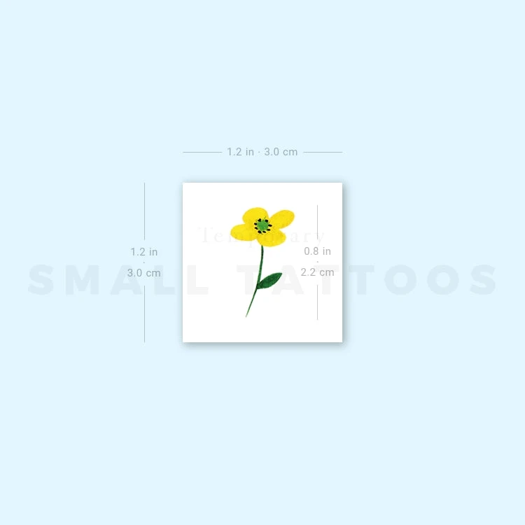 Small yellow flower temporary tattoo, designed by tattoo artist Zihee.