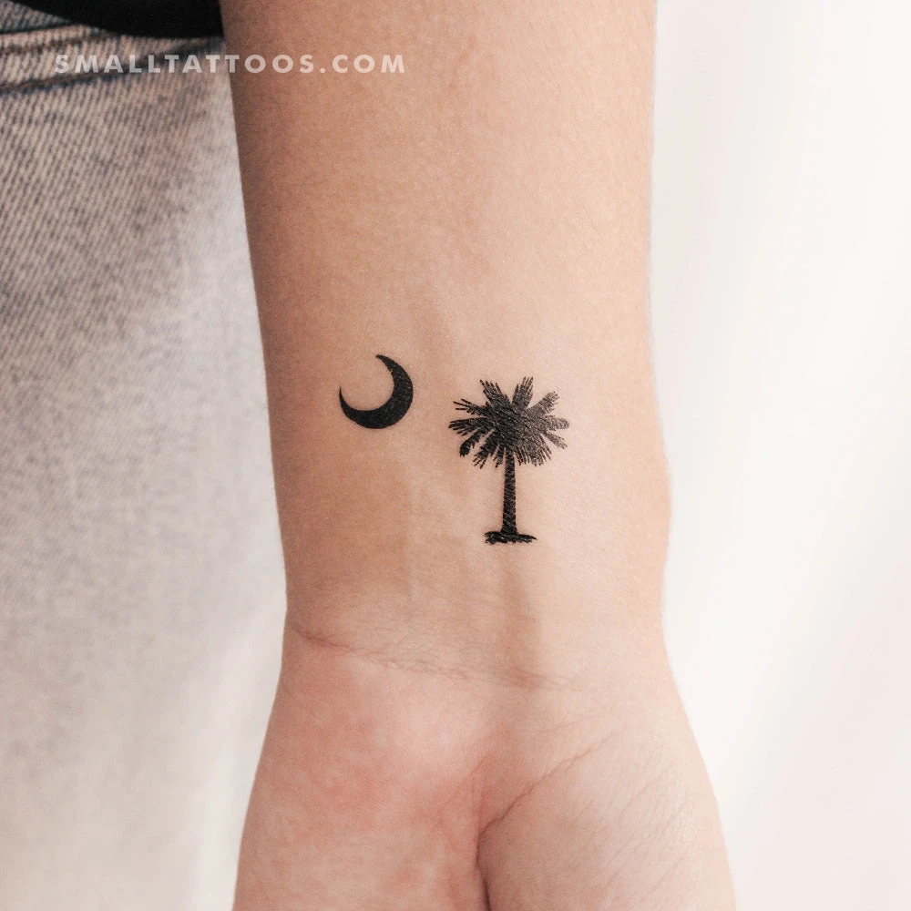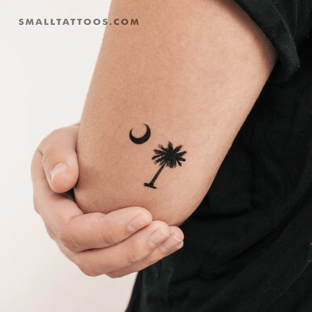 South Carolina Palm Tree And Moon Temporary Tattoo – Set Of 3