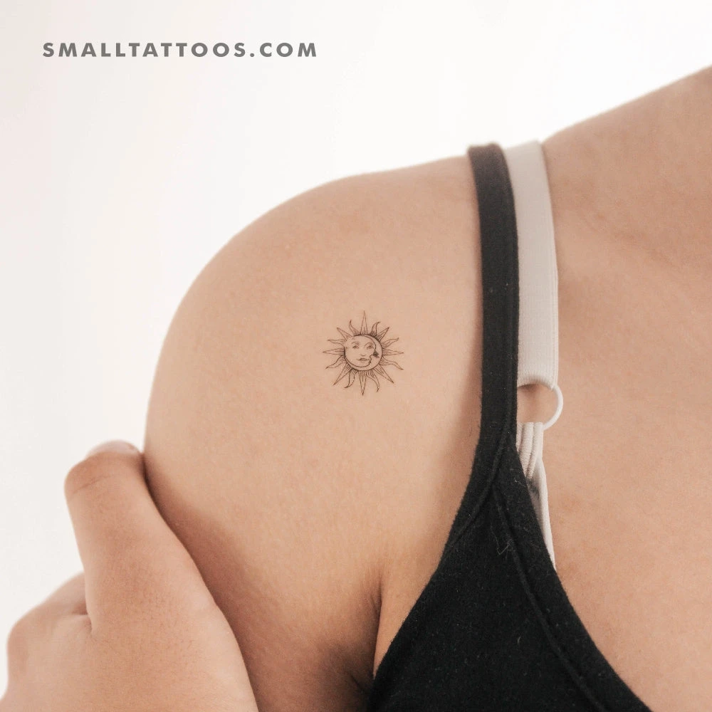 Are you looking for an attractive and intriguing tattoo that features the sun and the moon? Look no further than our intricately-detailed sun and moon temporary tattoo!