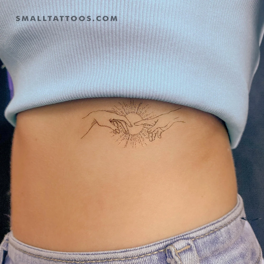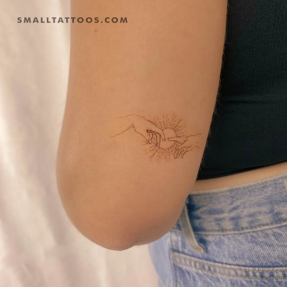 The Creation of Adam hands and sun temporary tattoo, designed by Puntuak.