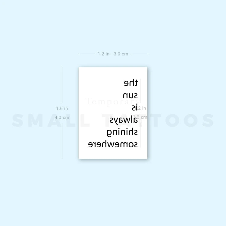 Sans-serif style “the sun is always shining somewhere” temporary tattoo.