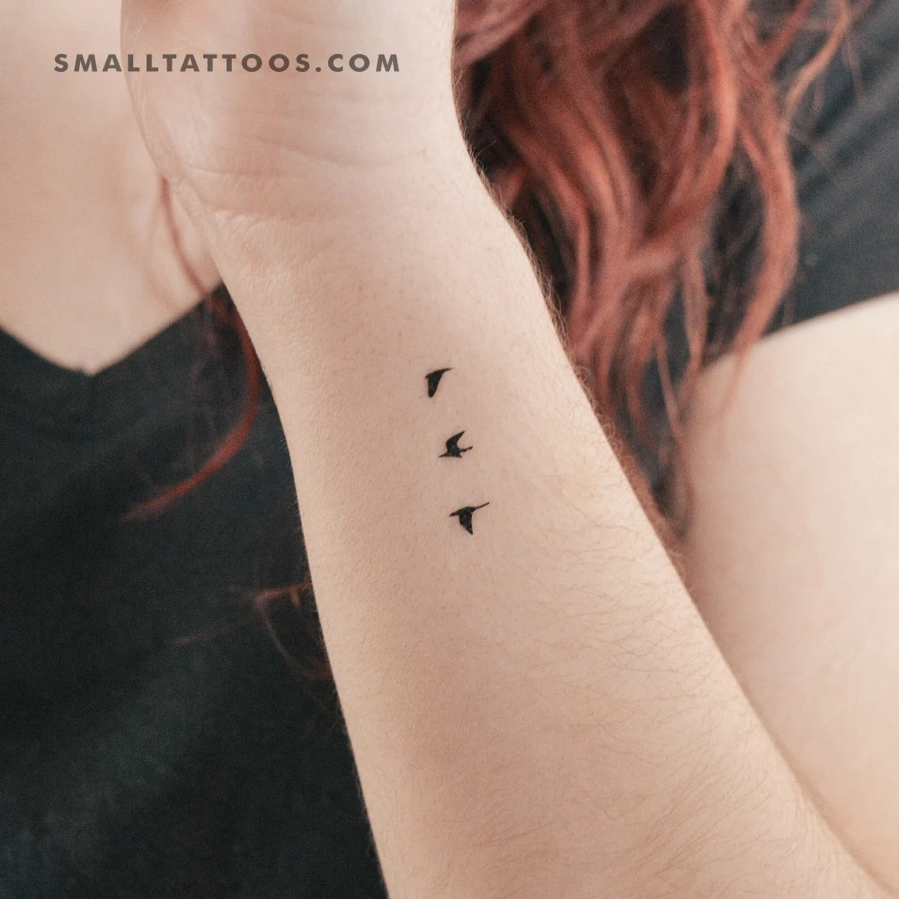 Three Tiny Flying Birds Temporary Tattoo (Set Of 3)
