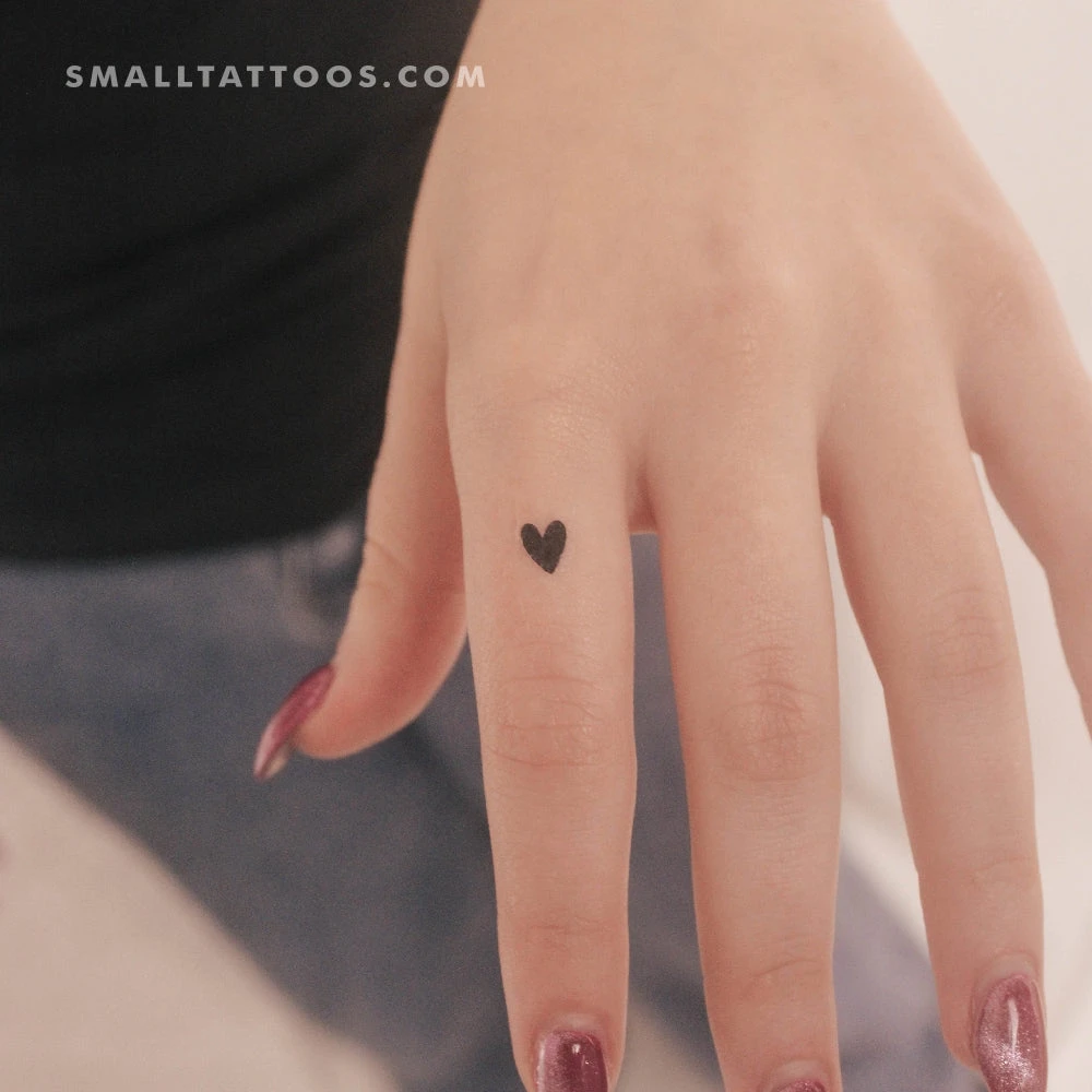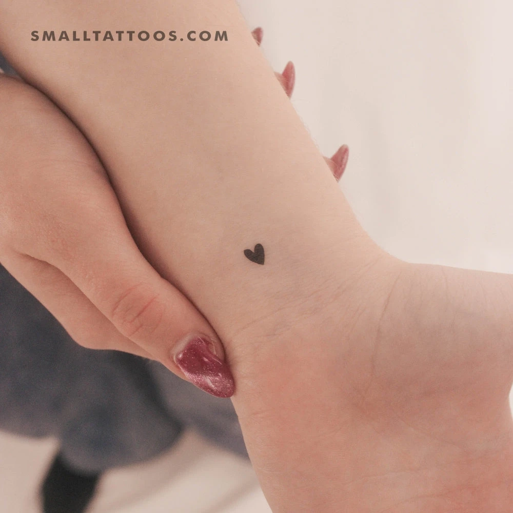 Tiny black heart temporary tattoo.
