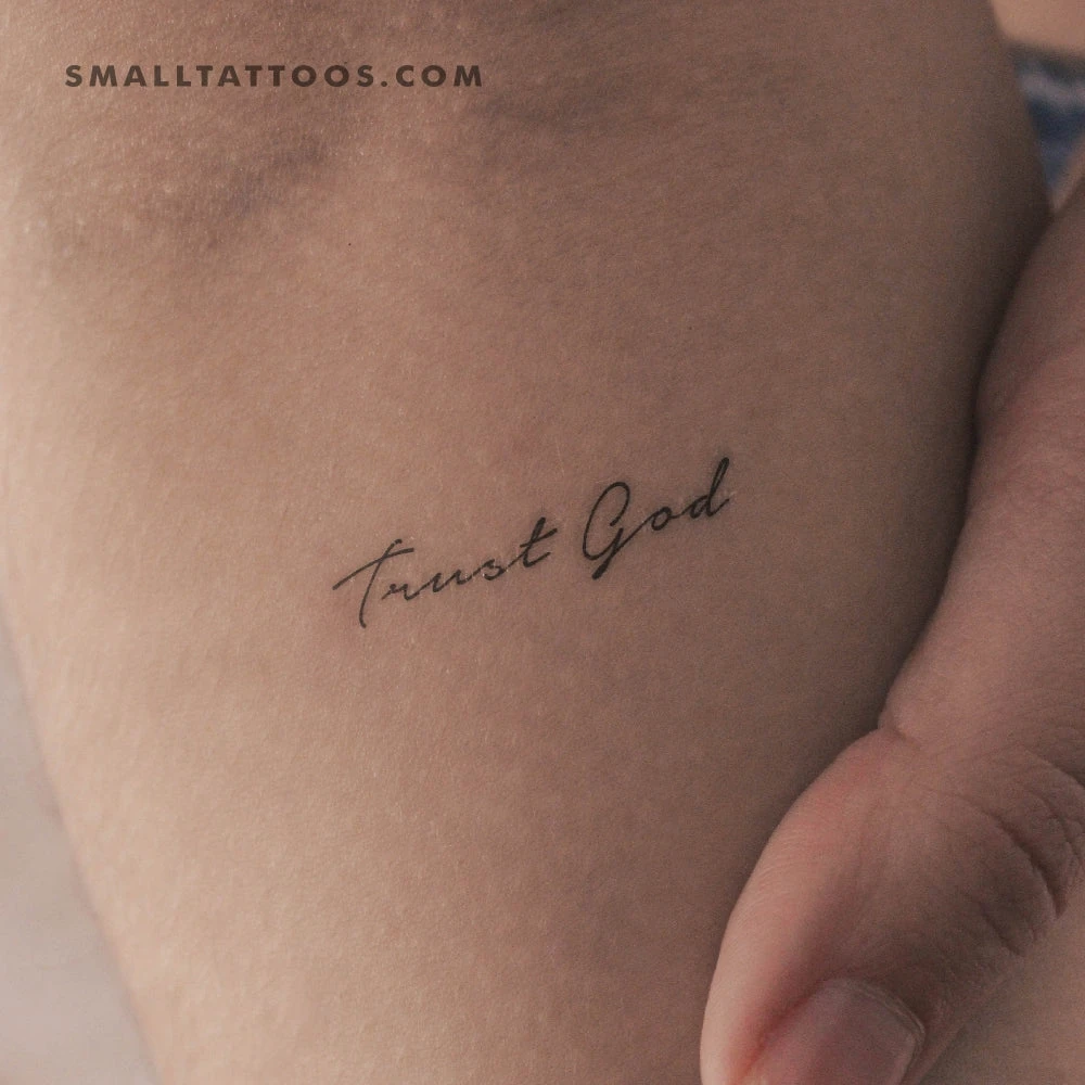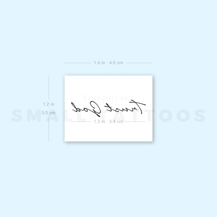 Handwritten script ‘Trust God’ temporary tattoo.