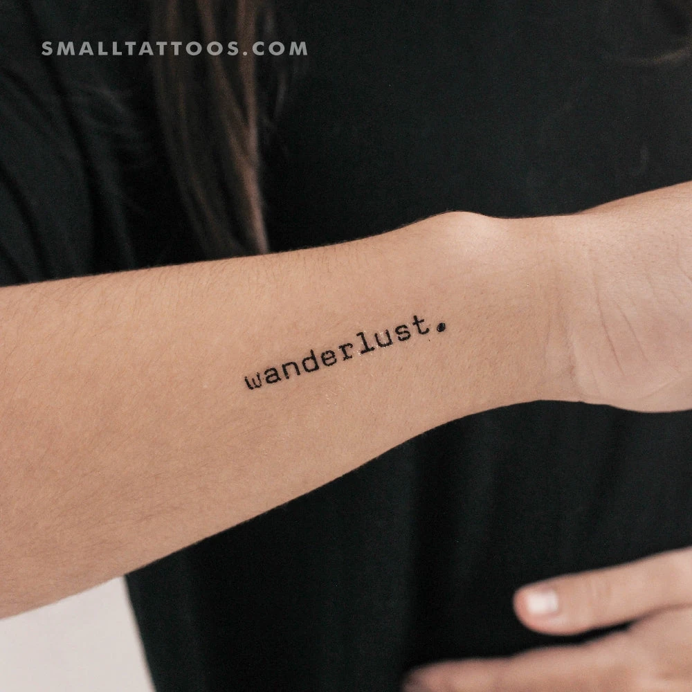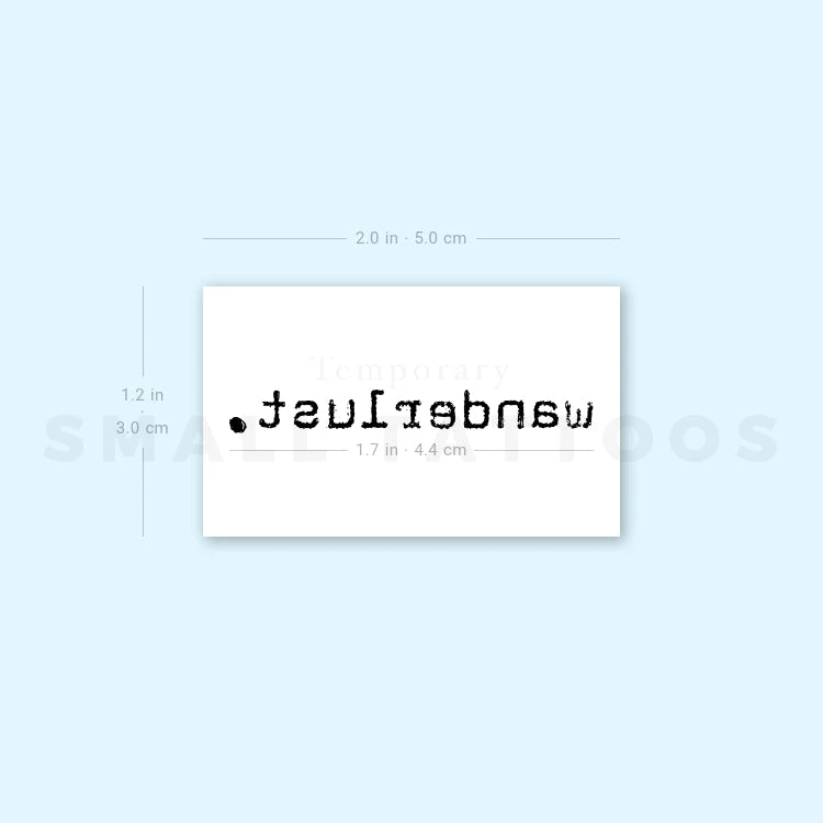 Typewriter Font Style ‘Wanderlust’ Temporary Tattoo (Set Of 3)