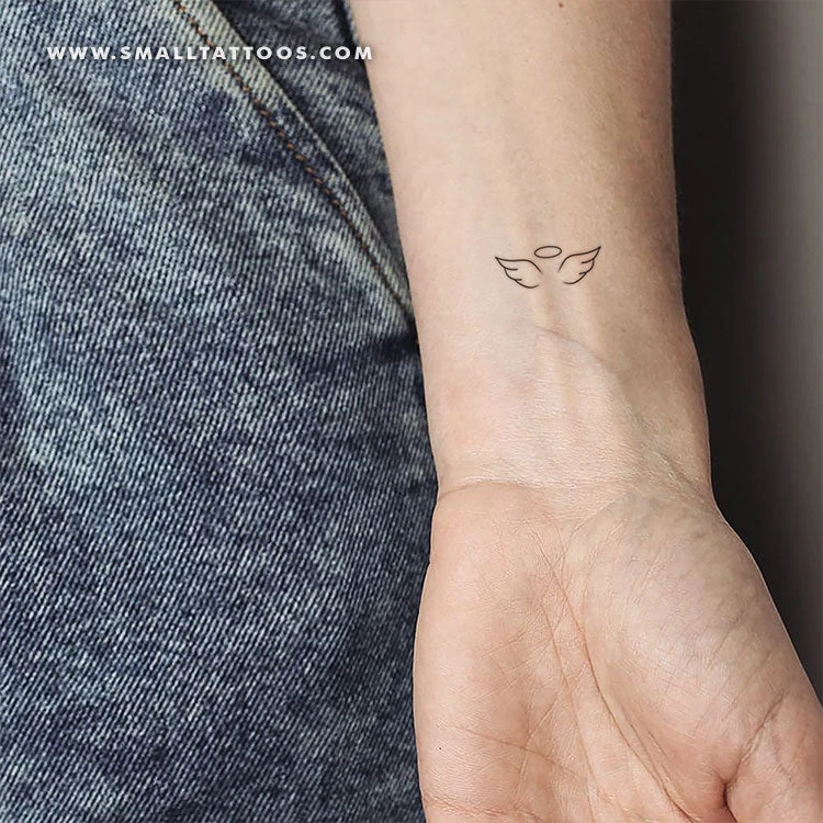 One common reason people choose our minimalist angel wings and halo fake tattoo is to represent the journey of the soul. The wings represent the ability to transcend the physical world and reach for the heavens, while the halo symbolizes divine guidance and protection.