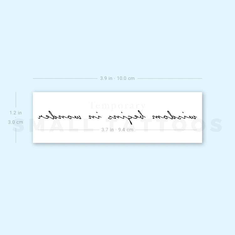 If you have a deep appreciation for our desire to learn and understand the world around us, you will love our ‘wisdom begins in wonder’ temporary tattoo. These words are attributed to the philosopher Socrates who said, ‘wonder is the feeling of a philosopher, and philosophy begins in wonder.’