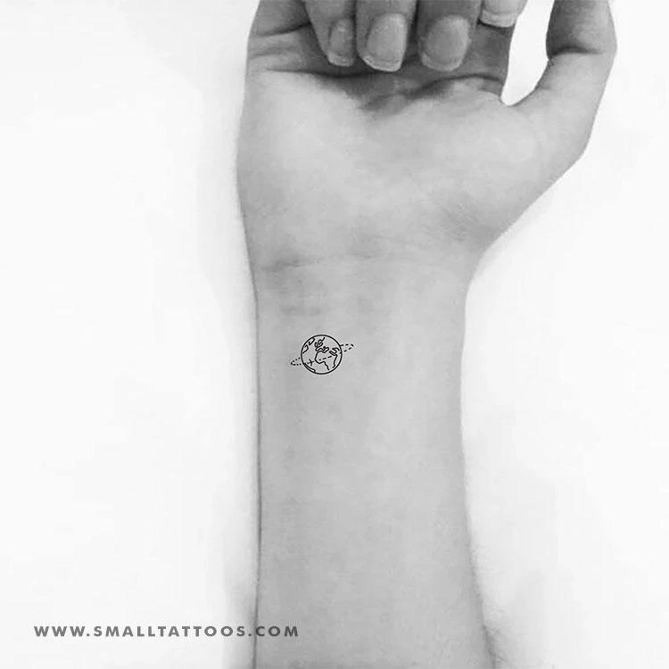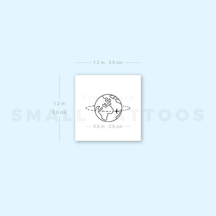 This design features the minimalist outline of the earth with a tiny plane encircling it. By combining two powerful symbols, this globe and plane fake tattoo will show everyone you meet how passionate you are about seeing the world and experiencing all it has to offer.