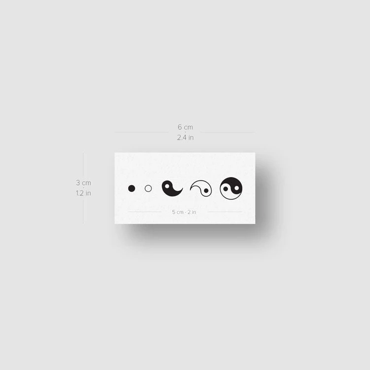 Many people are attracted to the powerful symbolism contained in this simple design and seek a personalized version for their permanent ink. If you’re looking for something a little different from the classic yin yang symbol, you might enjoy our yin yang deconstruction temporary tattoo. Created using black soy-based ink, this design features five distinct elements that are taken from the traditional symbol itself.